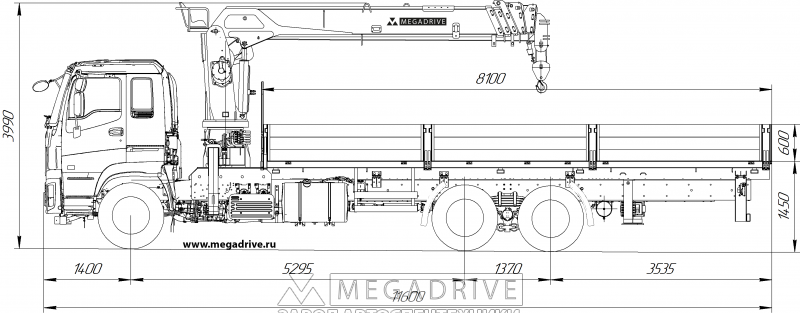 Кран тросового типа с максимальным вылетом 18.7 м дополнен алюминиевой бортовой платформой. Вместительный кузов позволяет доставлять в торговые центры даже продукцию пищевой промышленности.