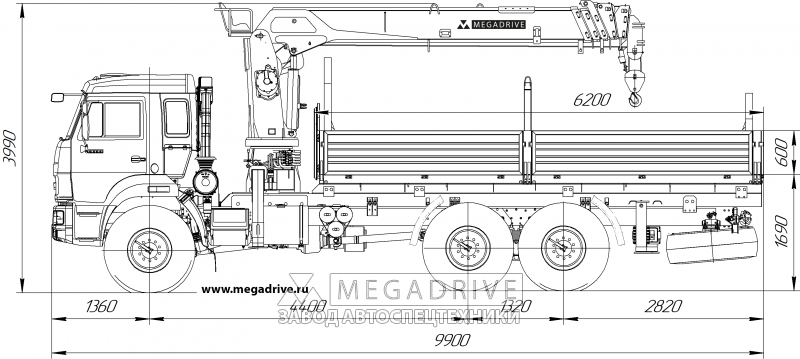 Бортовое авто, оснащенное КМУ Kanglim KS2056 с грузоподъемностью 7,1 т на базе шасси КАМАЗ 43118 имеет массу дополнительных опций. Автомобиль оснащен поворотным коником, что позволяет использовать его при перевозке опор для ЛЭП. Для удобства на средство передвижения были установлены ложементы. Это позволяет транспортировать опоры линий освещения без демонтажа бортов.